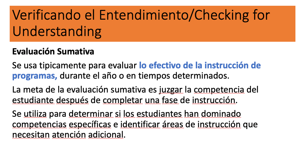 Verificando Entendimiento- Checking for Understanding