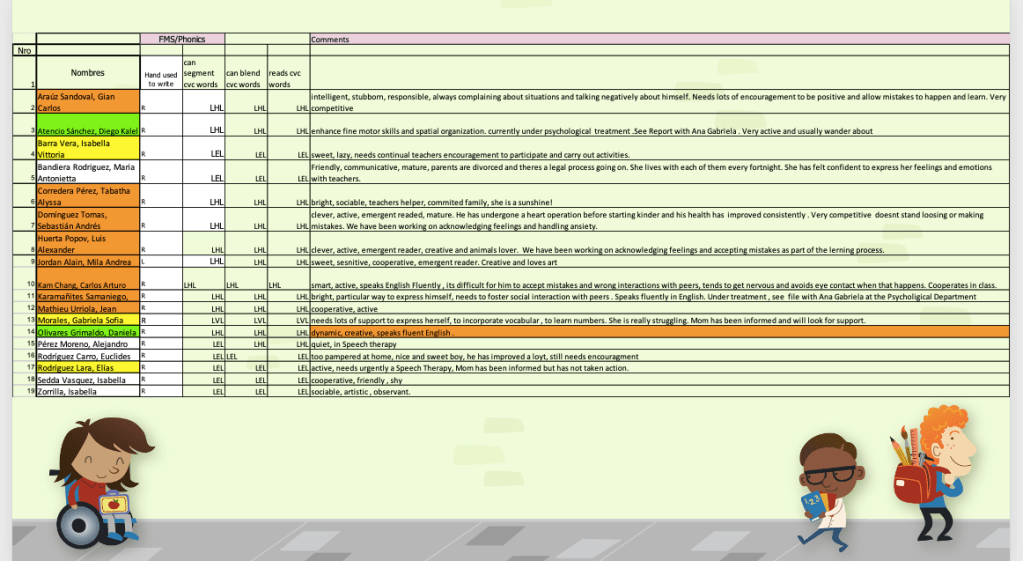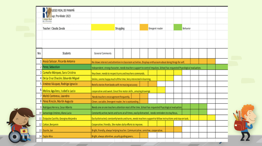 En pre-escolar, Teacher Mariela, coordinadora de sección, compartió la siguiente información sobre los diagnósticos que se aplican a los estudiantes.
